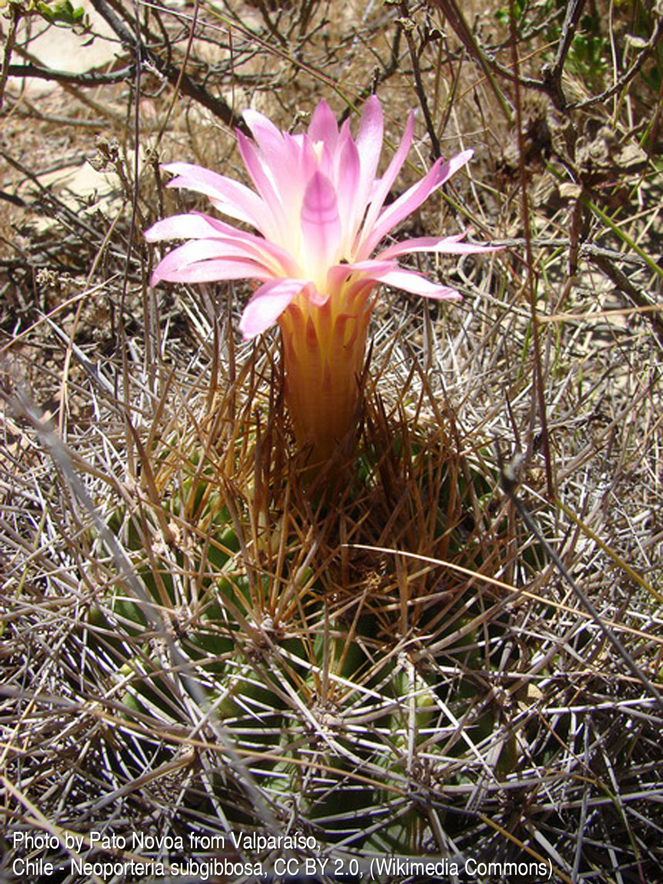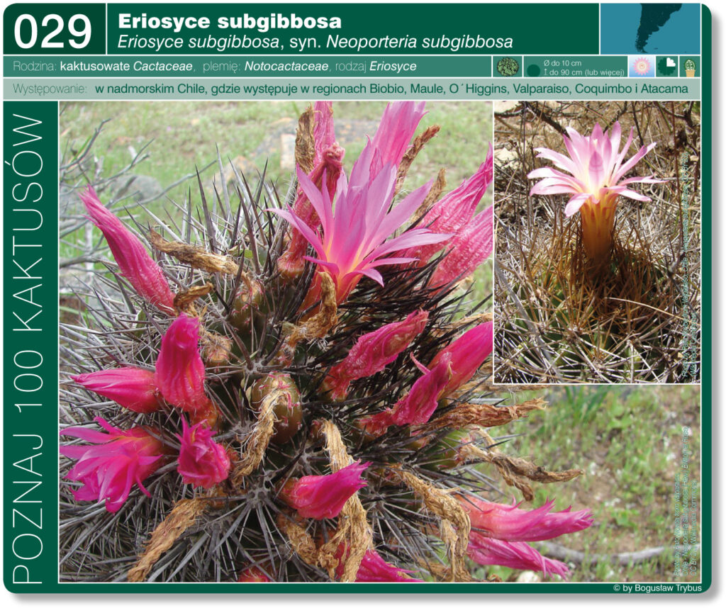 Eriosyce subgibbosa rośnie samotny, ale czasami jako rozgałęziony, później jako kolumnowy, a starsze okazy robią się nieco obwisłe.