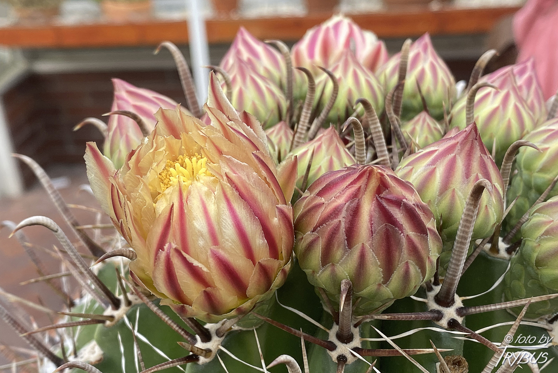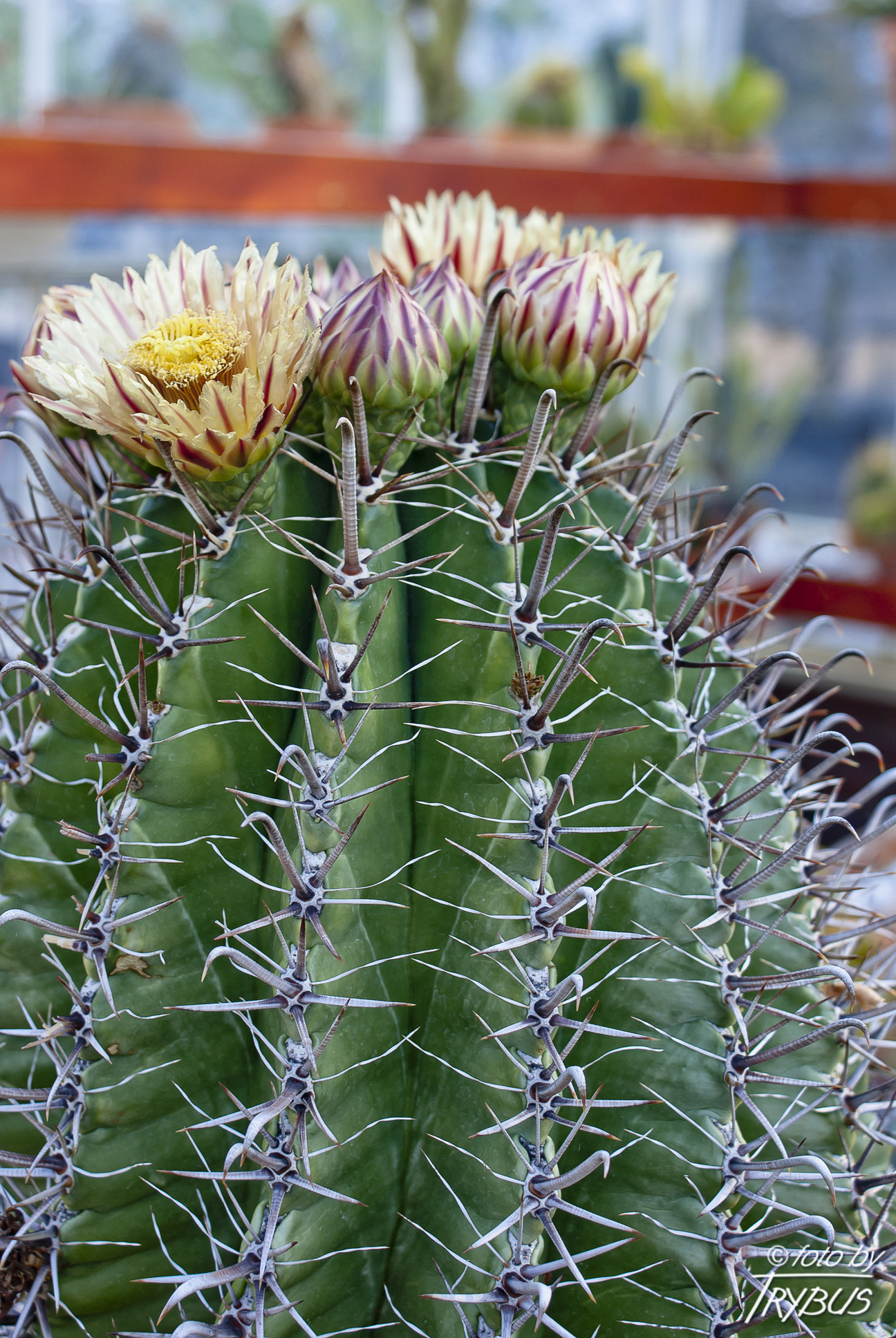 Światło potrzebują dużo światła, aby rozwinąć swoje typowe ciernie, potrzebuje pełnego światła słonecznego. Podlewanie powinno być regularnie latem, ale tak, że by doniczka nie stała na podstawce z wodą (łatwo gnije, zwłaszcza jeśli jest mokra). Należy także unikać zwilżania powierzchni tej rośliny, gdy jest mocne nasłonecznienie. Mokry kaktus w słońcu może powodować oparzenia słoneczne, które mogą prowadzić do blizn, a w konsekwencji infekcji grzybiczych. Pozostawić do wyschnięcia między podlewaniami. Podczas upałów może być konieczne częstsze podlewanie roślin, o ile roślina aktywnie rośnie. Od końca września należy ograniczyć podlewanie, aby zmusić roślinę do przejścia w stan spoczynku, do października należy przejść do nawadniania zimowego. Jeśli gleba pozostanie zbyt długo sucha, może nastąpić utrata korzeni, ale taki sam rezultat wystąpi, jeśli rośliny będą zarówno mokre przy niskiej temperaturze.