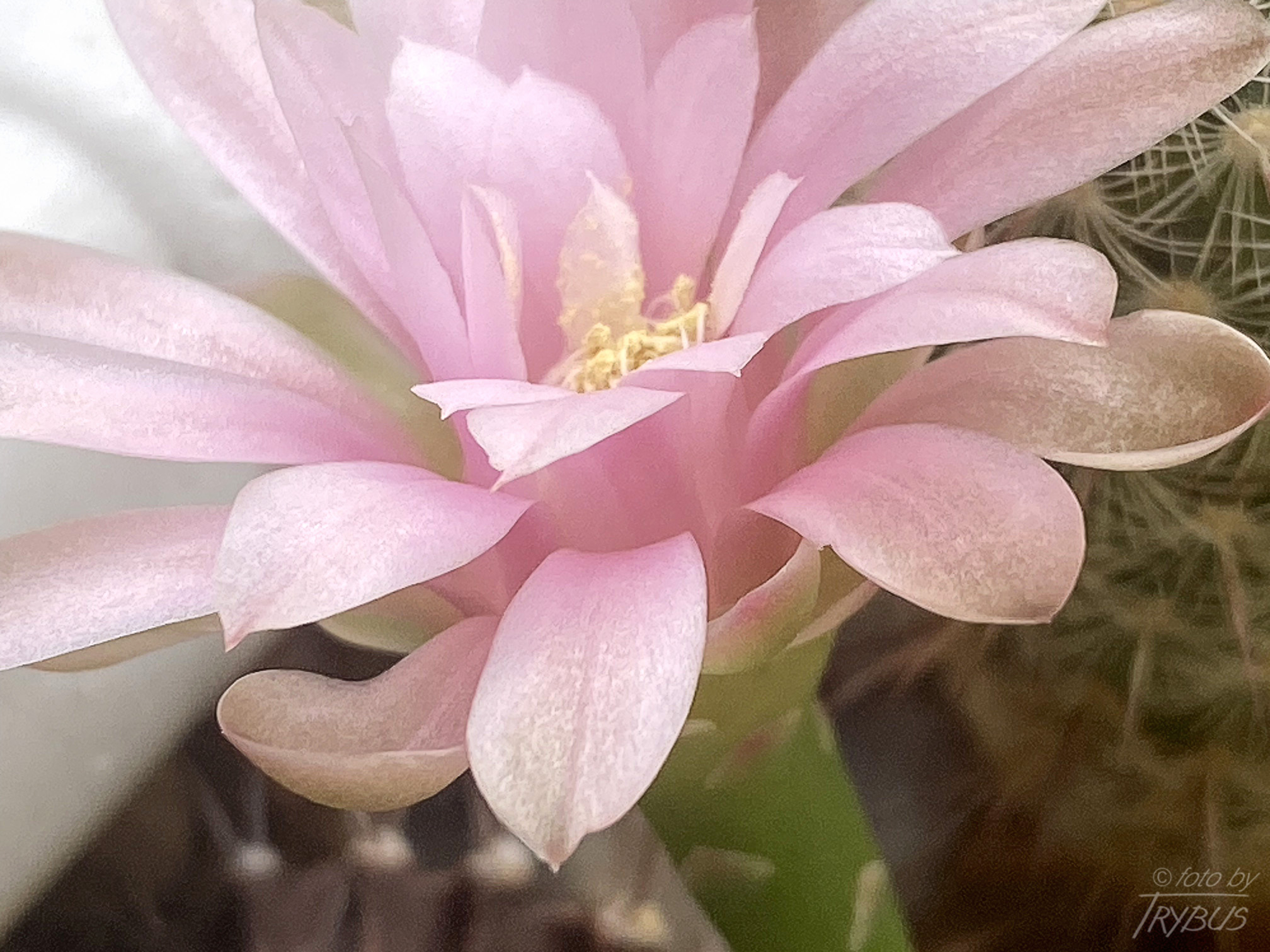 Gymnocalycium mihanovichii friedrichii „Rubra” – odmiana Hibotan. „HIBOTAN” to popularny zmutowany kaktus o czerwonej lub pomarańczowej barwie. Istnieją również formy czysto żółte lub różowo-białe, „Blondie” lub „Moon Cactus”. Są czerwone, pomarańczowe, żółte, a nawet białe, ponieważ nie zawierają chlorofilu, podobnie jak czerwień, którą widzimy na jesiennych liściach drzew, gdy ich chlorofil rozpada się i znika. Bez chlorofilu zmutowane gymnocalycium nie mogą produkować cukru, a bez cukru padną. Jedynym sposobem na utrzymanie ich przy życiu jest zaszczepienie ich na innym kaktusie, który ma chlorofil i który dostarczy cukier zmutowanemu potomkowi. Dolna część przeszczepu zawierająca chlorofil, zwana podkładką. W przypadku gymnoclycium jest to zwykle Hylocereus. Pierwsze dwie czerwone rośliny zostały wyprodukowane przez E. Watanabe w Japonii. Wysiew kilku tysięcy nasion G. friedrichii przyniósł dwie jaskrawoczerwone sadzonki, które szybko by padły, gdyby nie zostały zaszczepione od razu. Z nich wyprodukowano dosłownie miliony roślin rozsianych po całym świecie poprzez wielokrotne szczepienie i cięcie. Ponadto dostępnych jest obecnie wiele wielobarwnych i różnorodnych odmian (tylko częściowo odbarwionych).