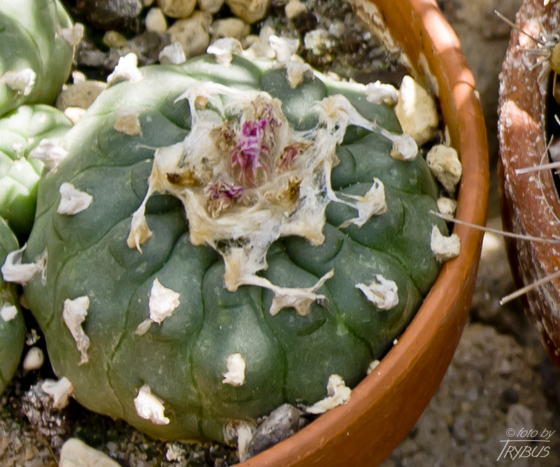 Lophophora williamsii rośnie samotnie, ale z wiekiem może rozrastać się tworząc kępy o średnicy do 1 m, zwykle jest bezcierniowy.