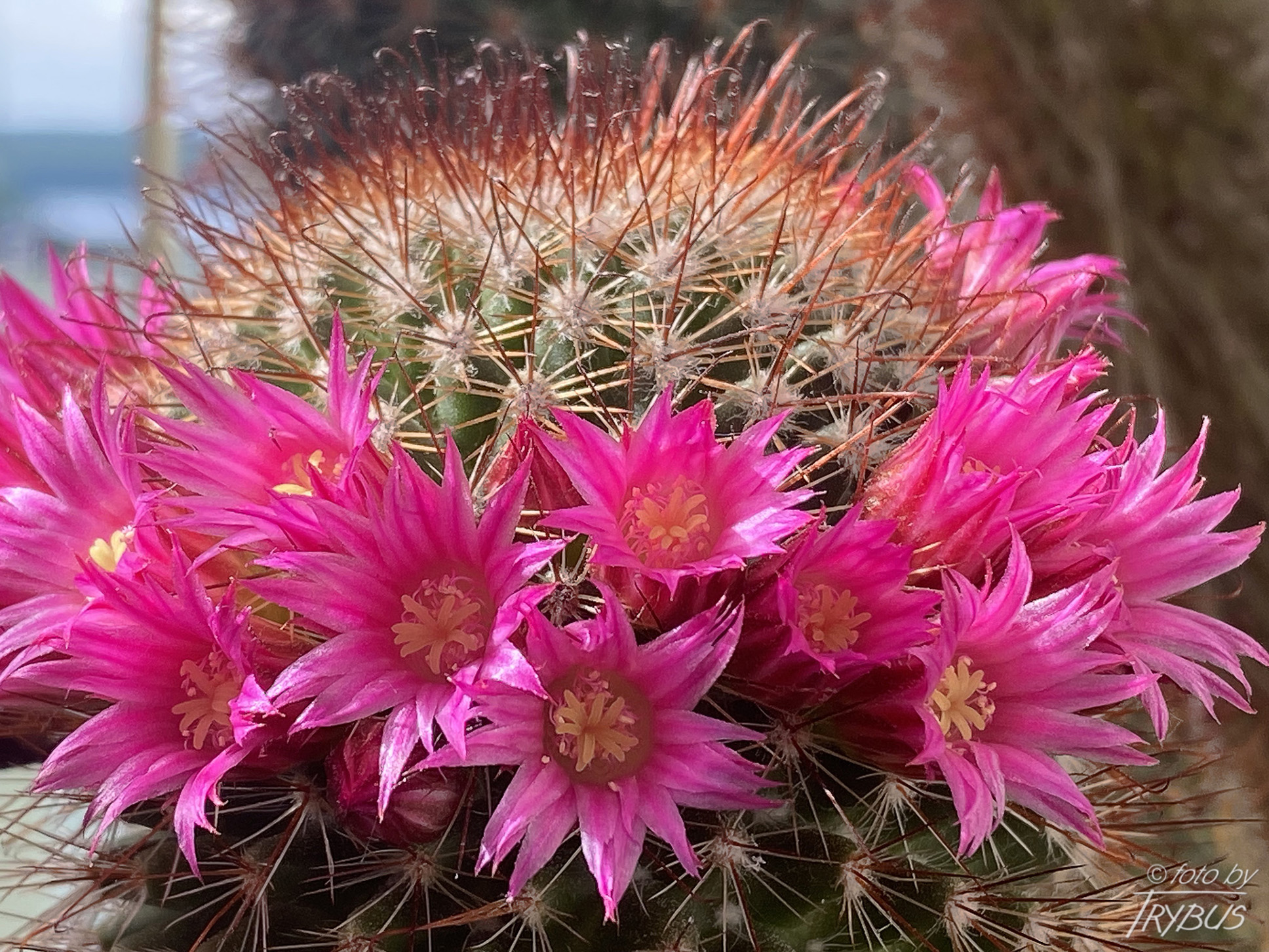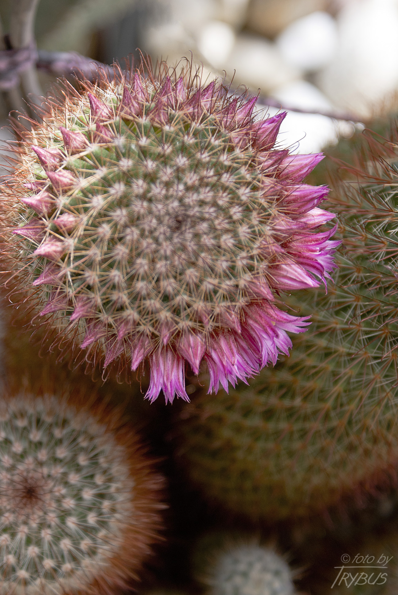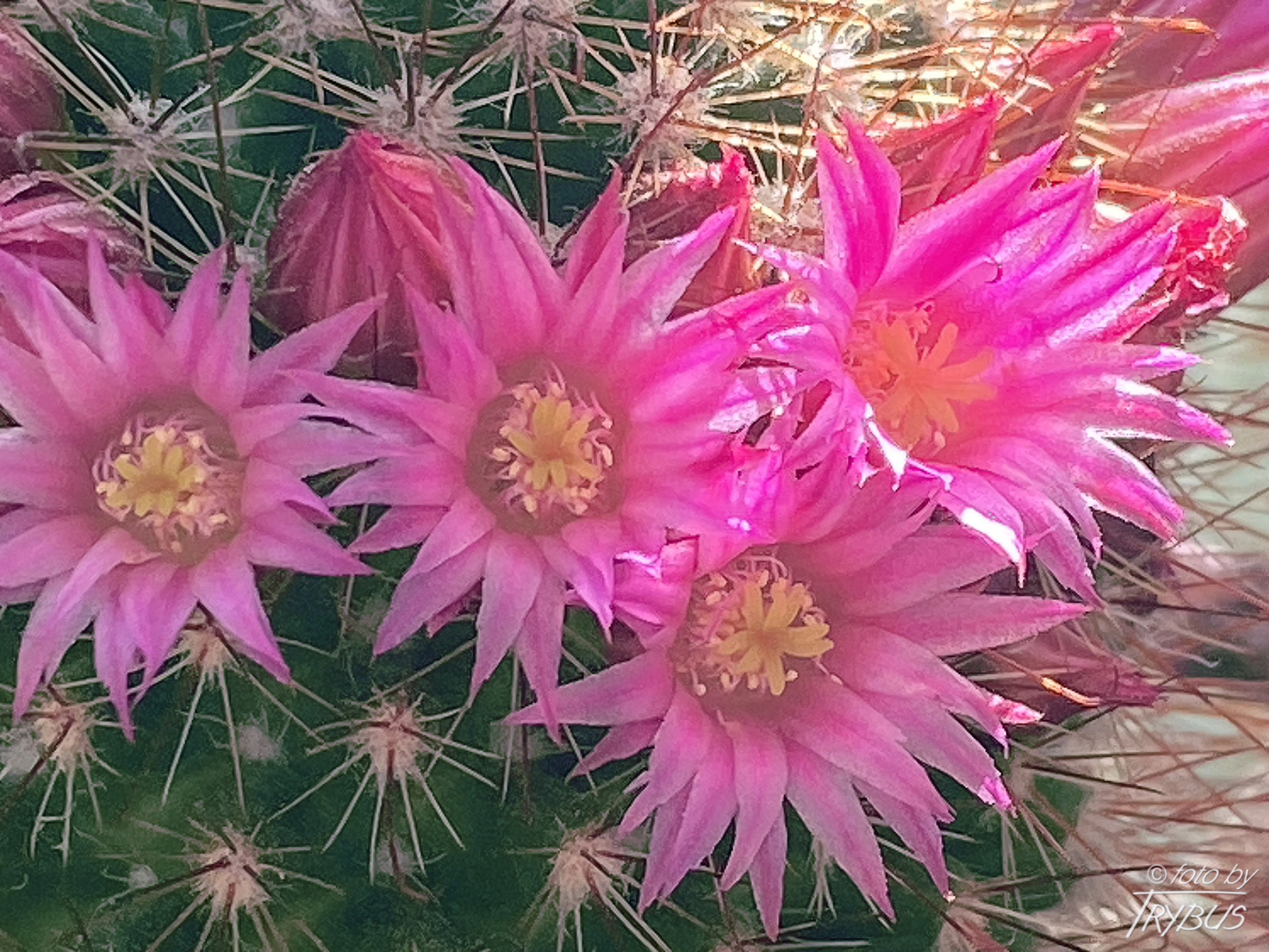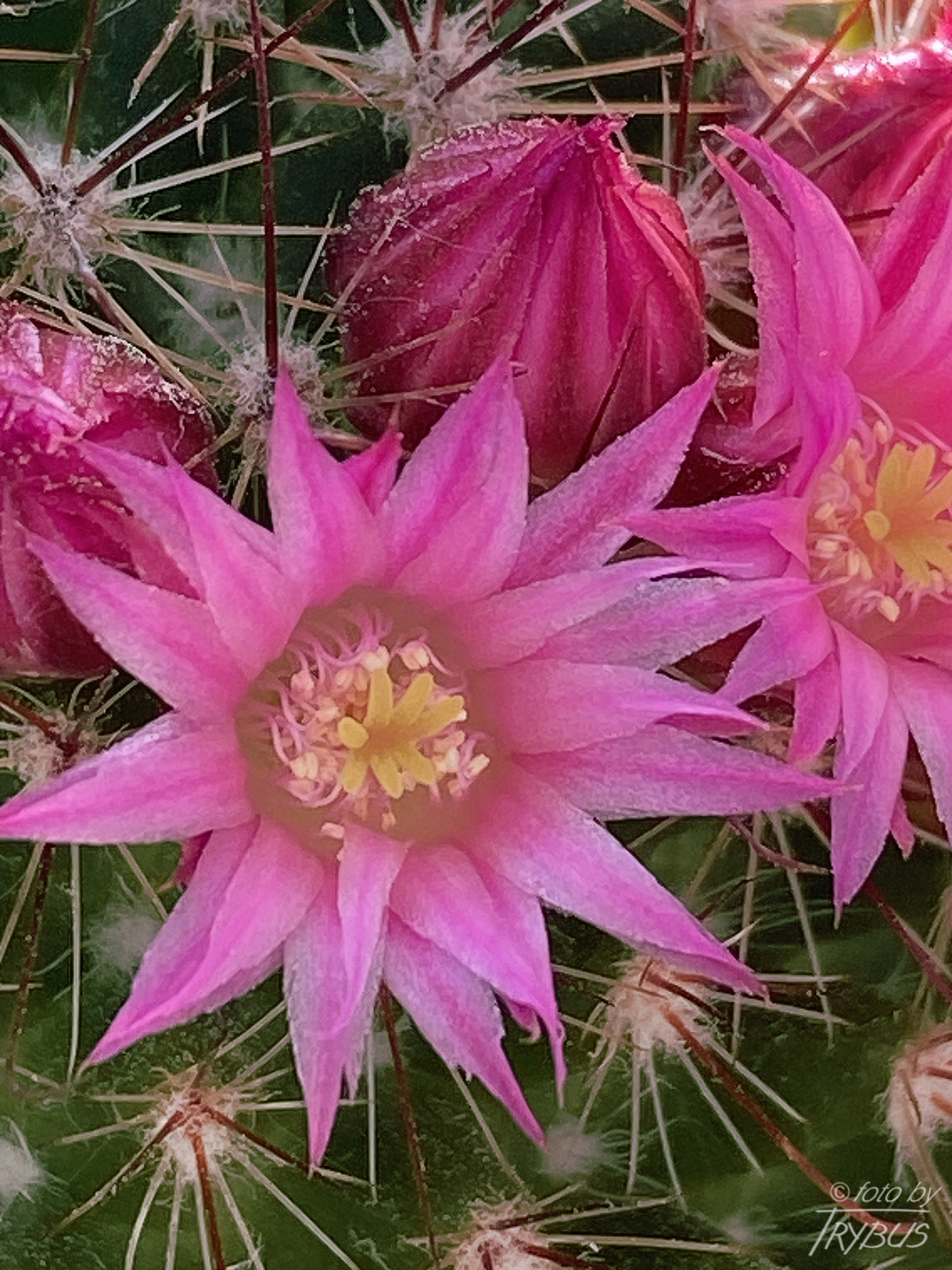Ciernie środkowe są 4, różowawo podpalane, a w końcówce czarno-brązowy, mają 10-12 mm długości, jeden z nich, najniższy jest haczykowaty i dłuższy.