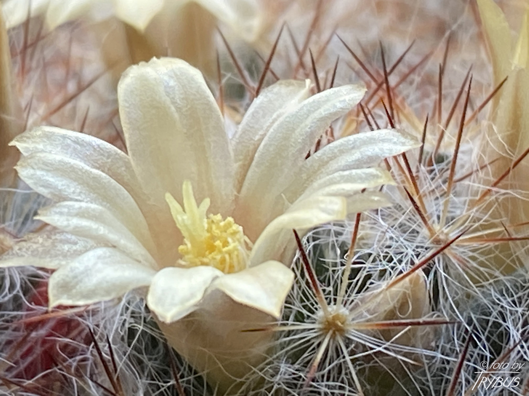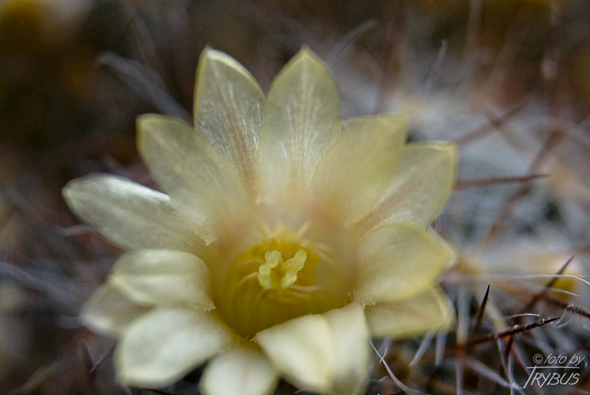 Cierni bocznych jest 25-40, są włosowate, często przechodzące w środkowe, proste lub skręcone, białe do żółtych do brązowych, długości 3-12 mm.