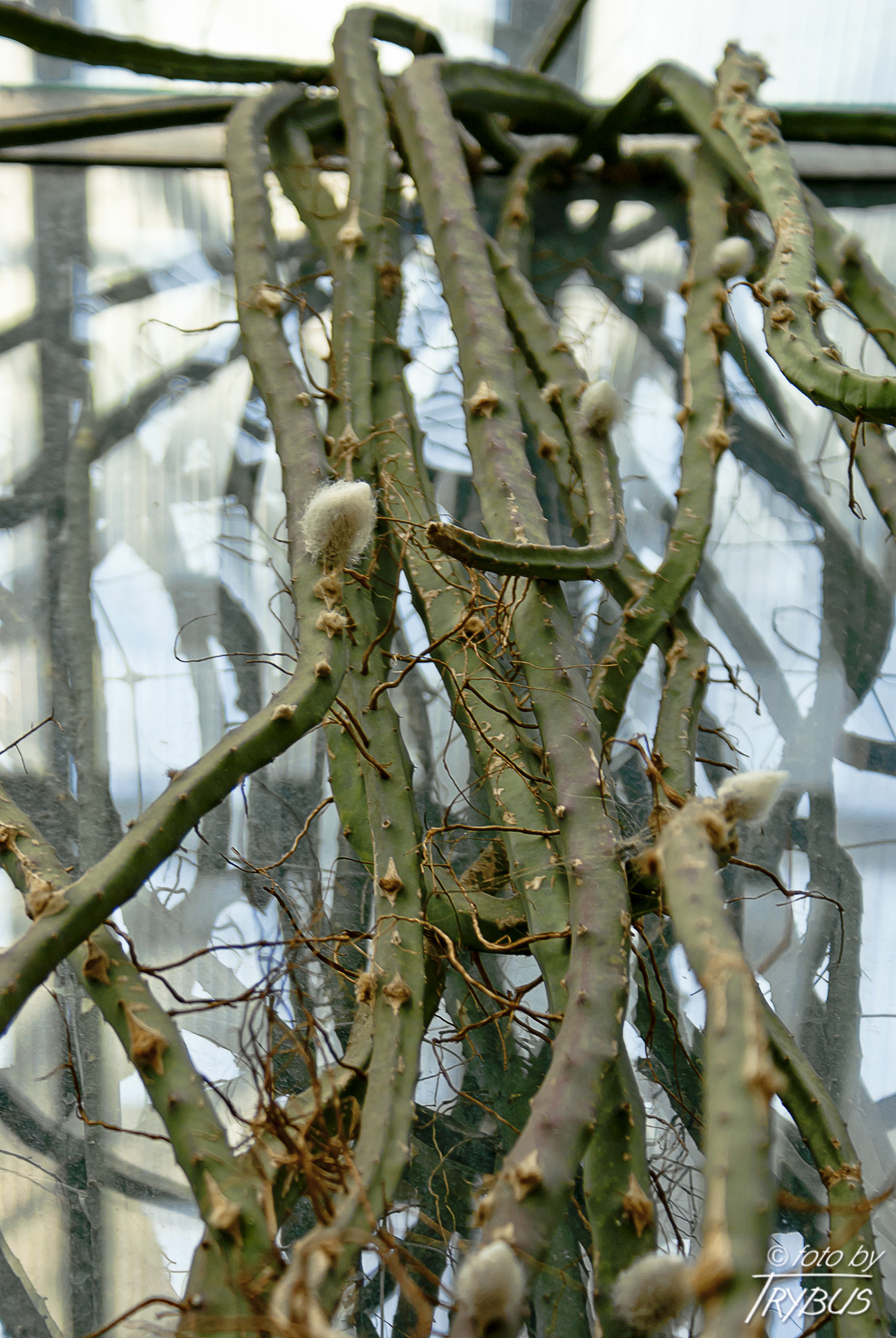 Pędy są grube, wężowate, rozłożyste lub zwisające o długości do 5 m i średnicy od 1 do 2,5 cm.