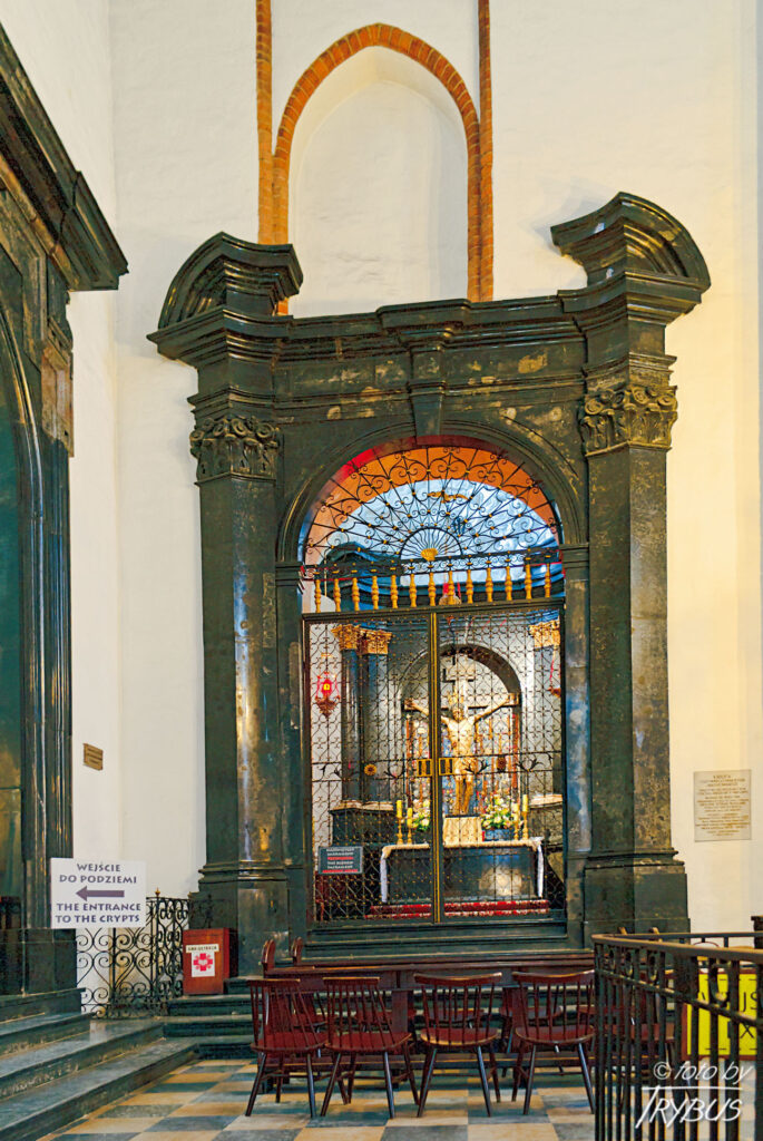 Kolejną kaplicą jest oddzielona od kościoła oszkloną kratą kaplica Chrztu Świętego, tzw. Baptysterium. Niegdyś w tym miejscu była kaplica Świętej Trójcy, skasowana w XIX wieku. W centralnym miejscu baptysterium stoi zabytkowa chrzcielnica z marmuru dębickiego, przykryta złoconą nakrywą, wykonana w 1621 roku przez Petrusa Noire. Chrzcielnica była rozbita na kilkadziesiąt fragmentów, a podczas odgruzowywania skompletowana i posklejana. W kaplicy tej znajduje się również obraz Michała Willmanna z XVII wieku, przedstawiający Chrzest Chrystusa.