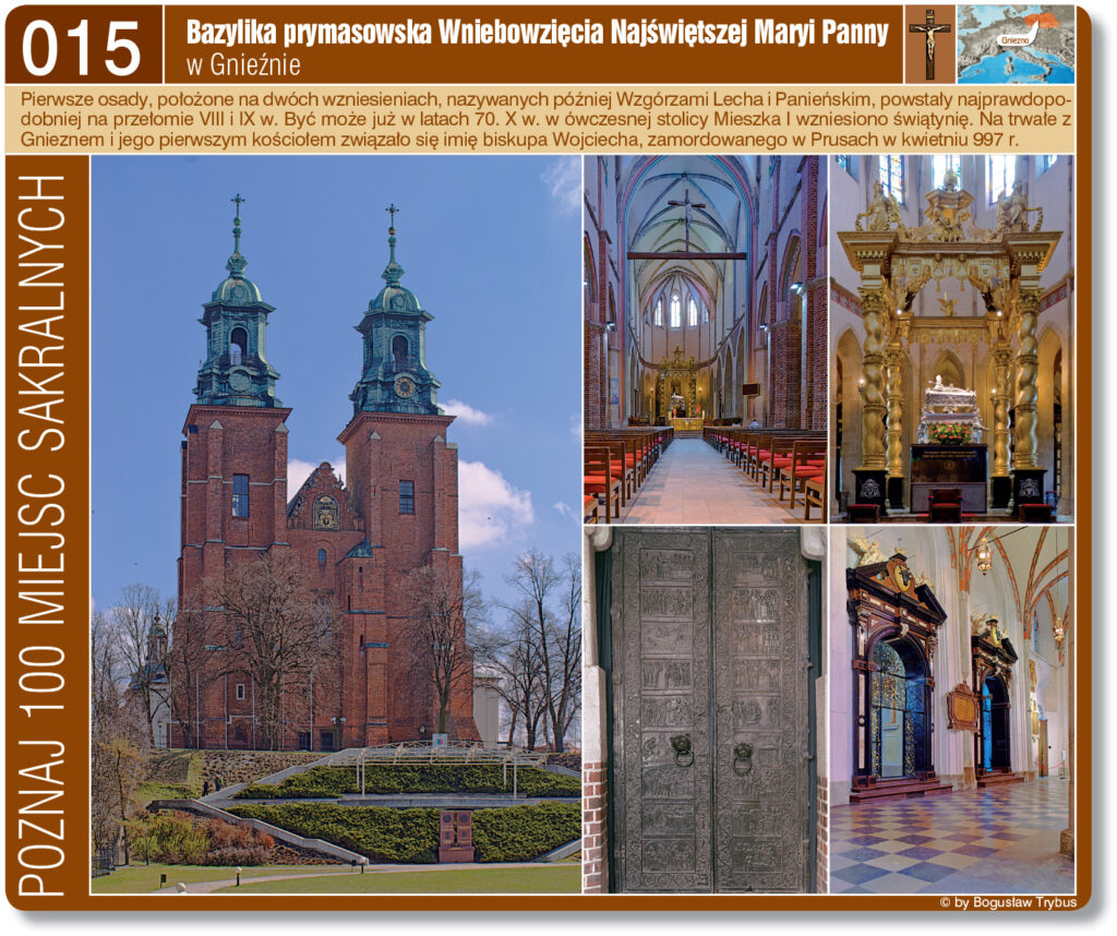 Bazylika prymasowska Wniebowzięcia Najświętszej Maryi Panny w Gnieźnie zwana jest również archikatedrą gnieźnieńską lub sanktuarium św. Wojciecha. Od 1000 roku główna świątynia metropolii gnieźnieńskiej, nazywana „Matką kościołów polskich”. Tutaj jest pochowany św. Wojciech – główny patron Polski oraz miejsce pięciu koronacji królewskich (Bolesław I Chrobry, Mieszko II Lambert, Bolesław II Szczodry, Przemysł II i Wacław II).