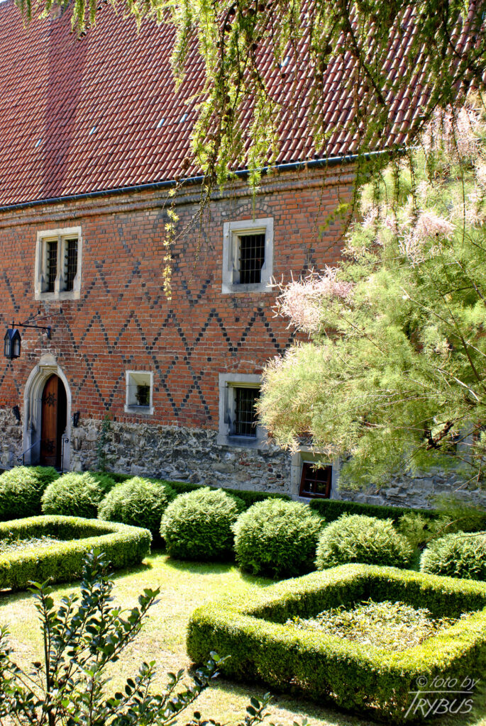 Teren wokół obwiedziony ogrodzeniem z około 1828 roku. Przy drodze prowadzącej do Zamku znajduje się statua Wincentego Kadłubka.