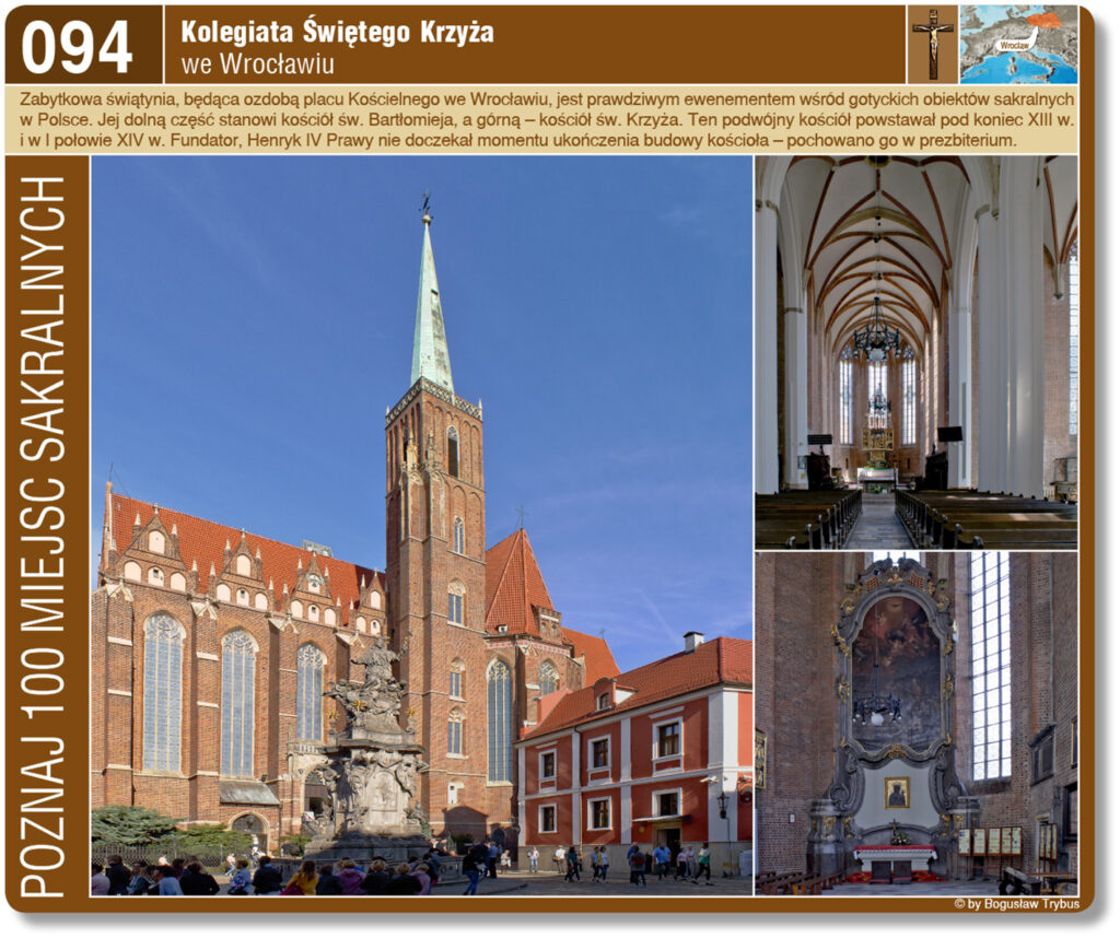 Kolegiata Świętego Krzyża oraz kościół św. Bartłomieja we Wrocławiu to bardzo wysoka, dwukondygnacyjna budowla, która mieści dwa kościoły – dolny pod wezwaniem św. Bartłomieja a górny, właściwy, pod wezwaniem Świętego Krzyża. Rzuty poziome obu kościołów są niemal identyczne.