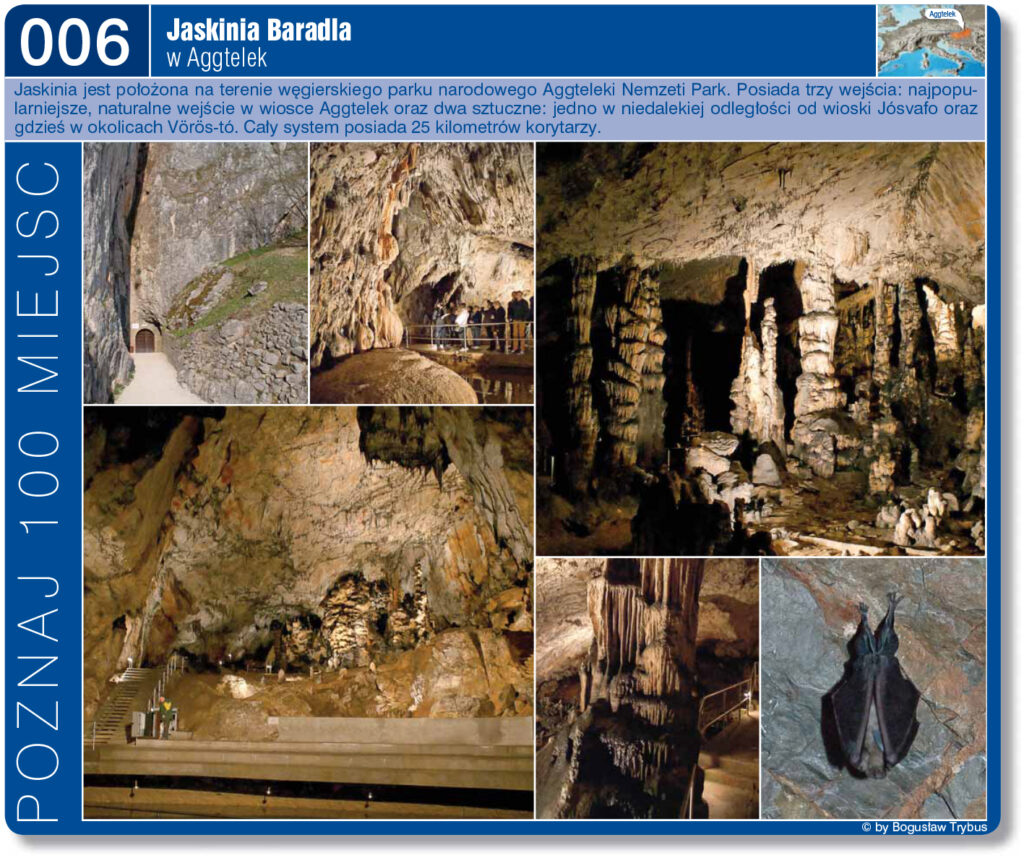 Jaskinia Baradla jest położona na terenie węgierskiego parku narodowego Aggteleki Nemzeti Park, który jest położony w północnej części Węgier przy granicy ze Słowacją. Rozpościera się na powierzchni ponad 20 tysięcy hektarów, na krasie Aggtelek i na węgierskiej części krasu Gömör-Tornai. Na terenie krasu Gömör–Tornai są znane jest około 1200 jaskiń, z czego 273 są możliwe na terenie Parku Narodowego Na terenie Aggtelek na Węgrzech Jaskinia Baradla jest to najstarsza i najsłynniejsza jaskinia naciekowa na Węgrzech, odwiedzana od wieków.