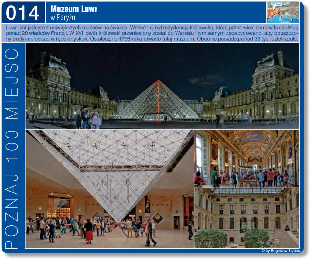 Luwr to świątynia sztuki. Zakładając, że obejrzenie jednego eksponatu zajmie nam 30 sekund, na zobaczenie całej kolekcji Luwru musielibyśmy poświęcić 100 dni. Jest jednym z największych muzeum sztuki. W porażających wielkością wnętrzach, o całkowitej powierzchni wynoszącej 60 600 m2, znajduje się około 380 000 dzieł sztuki, z których 35 000 tworzą stałe ekspozycje. Co roku Luwr zwiedza 10 milionów turystów. I jak to wszystko opisać tutaj…