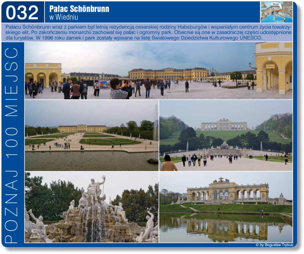 Pałac Schönbrunn jest jedną z największych i najbardziej rozpoznawalnych rezydencji koronowanych głów Europy. Jest dla Wiednia tym, czym pałac w Wersalu dla Paryża. Dziś, rokrocznie przez dawne cesarski podwoje, przewija się prawie 2,5 miliona zwiedzających, zafascynowanych historią, architekturą i sztuką.