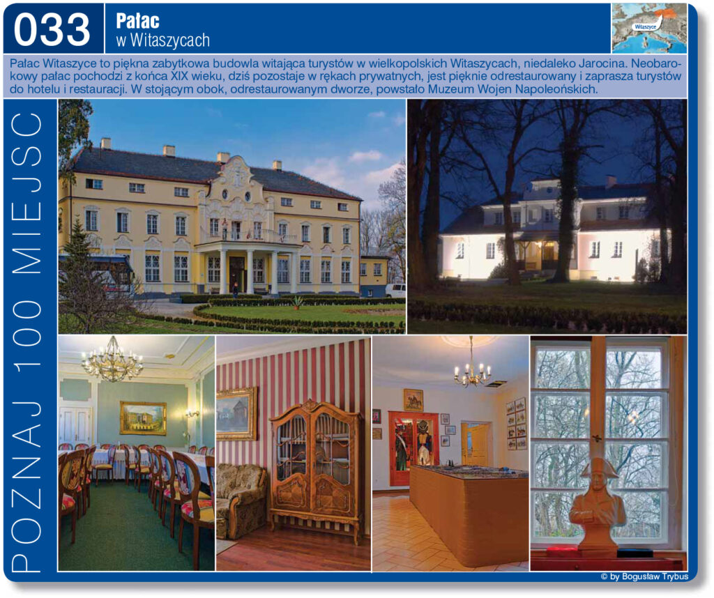 W centralnej części Witaszyc znajduje się kompleks dworsko-pałacowo-parkowy. Składa się on z neobarokowego pałacu, stojącego nieopodal dworu oraz rozległego parku. Ogólna powierzchnia parku wraz z elementami przyległymi wynosi 5,5 ha. Natomiast zadrzewiona (zawierająca starodrzew) i użytkowana część parkowa wynosi 3,7 ha.