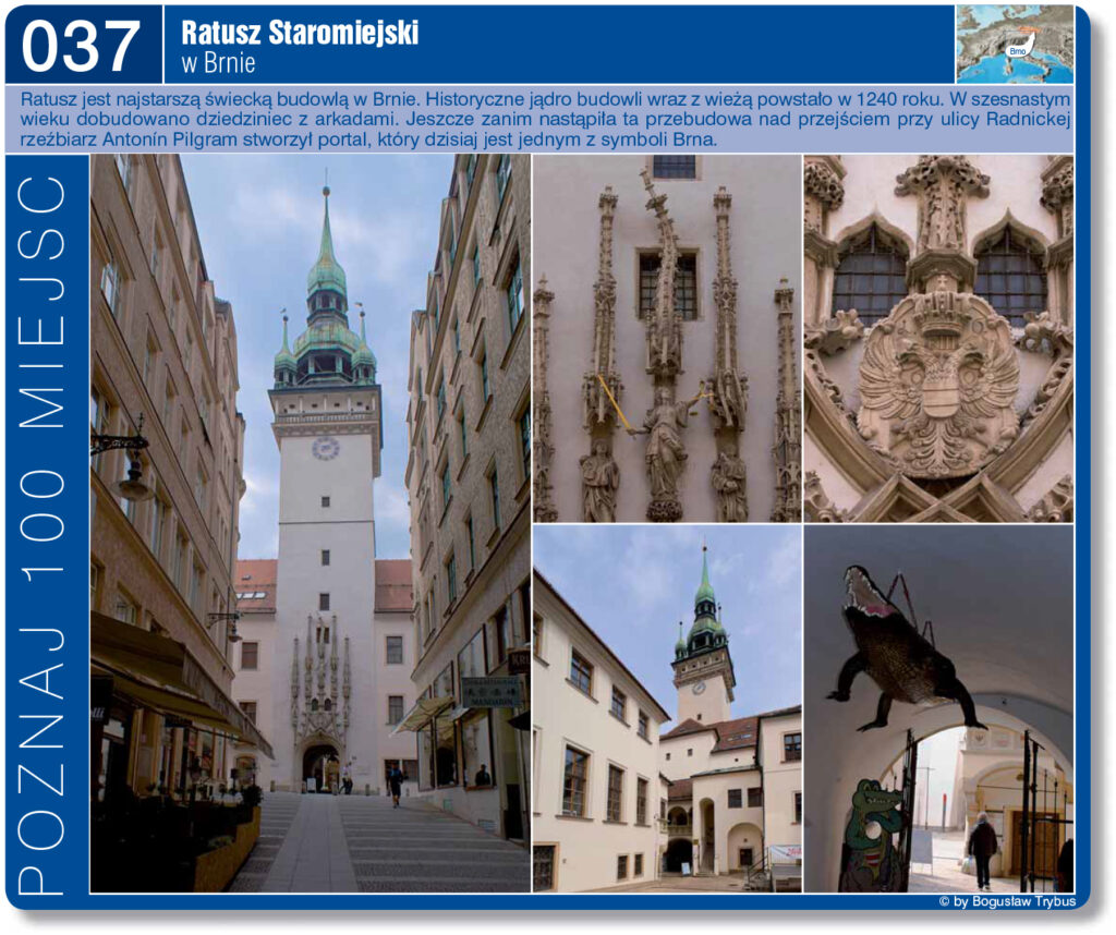 Ratusz Staromiejski w Brnie swe początki ma jeszcze w średniowieczu, to najstarszy budynek w Brnie, o charakterze świeckim. Ma chyba najpiękniejszą wieżę w regionie. Kto zdecyduje się pokonać 173 schody, ten z wieży zobaczy zapierający dech widok na całe stare miasto.
