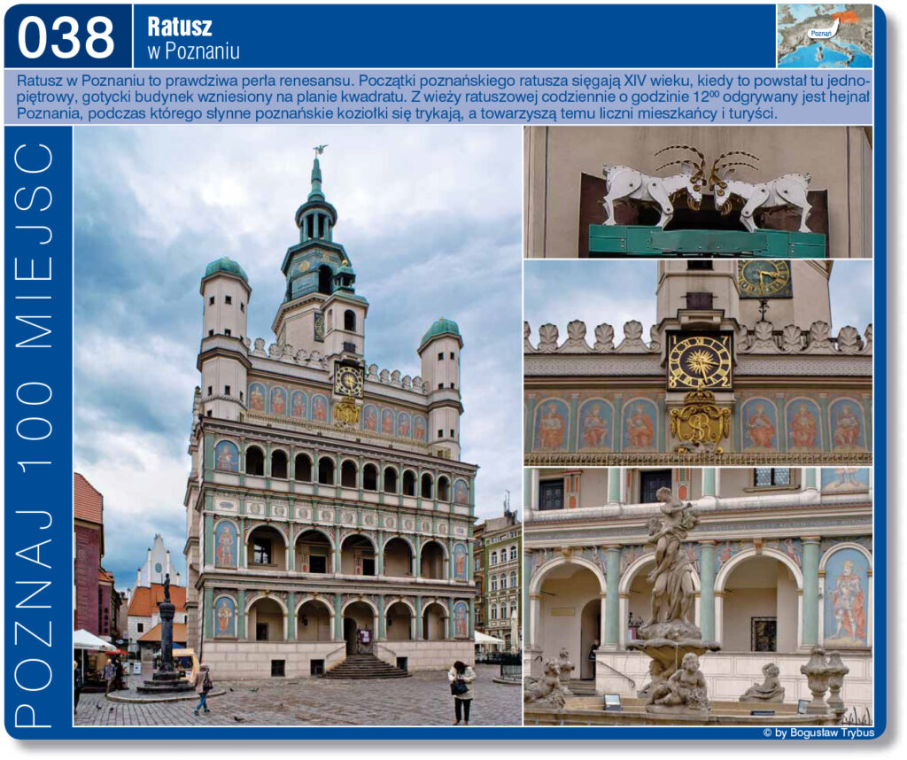 Ratusz poznański jest niewątpliwie najwspanialszą budowlą renesansową w Wielkopolsce i jedną z najpiękniejszych w Polsce. Najstarsza wzmianka o ratuszu (wtedy gotyckim) pochodzi z 1310 r. Wybudowano go zapewne niewiele wcześniej, na przełomie XIII i XIV w. Po pożarze miasta, w połowie XVI wieku, stary ratusz uległ częściowemu zniszczeniu, rozbudował ratusz w kierunku zachodnim. Włoski architekt Jan Baptysta Quadro z Lugano nadał ratuszowi nowy, renesansowy charakter.