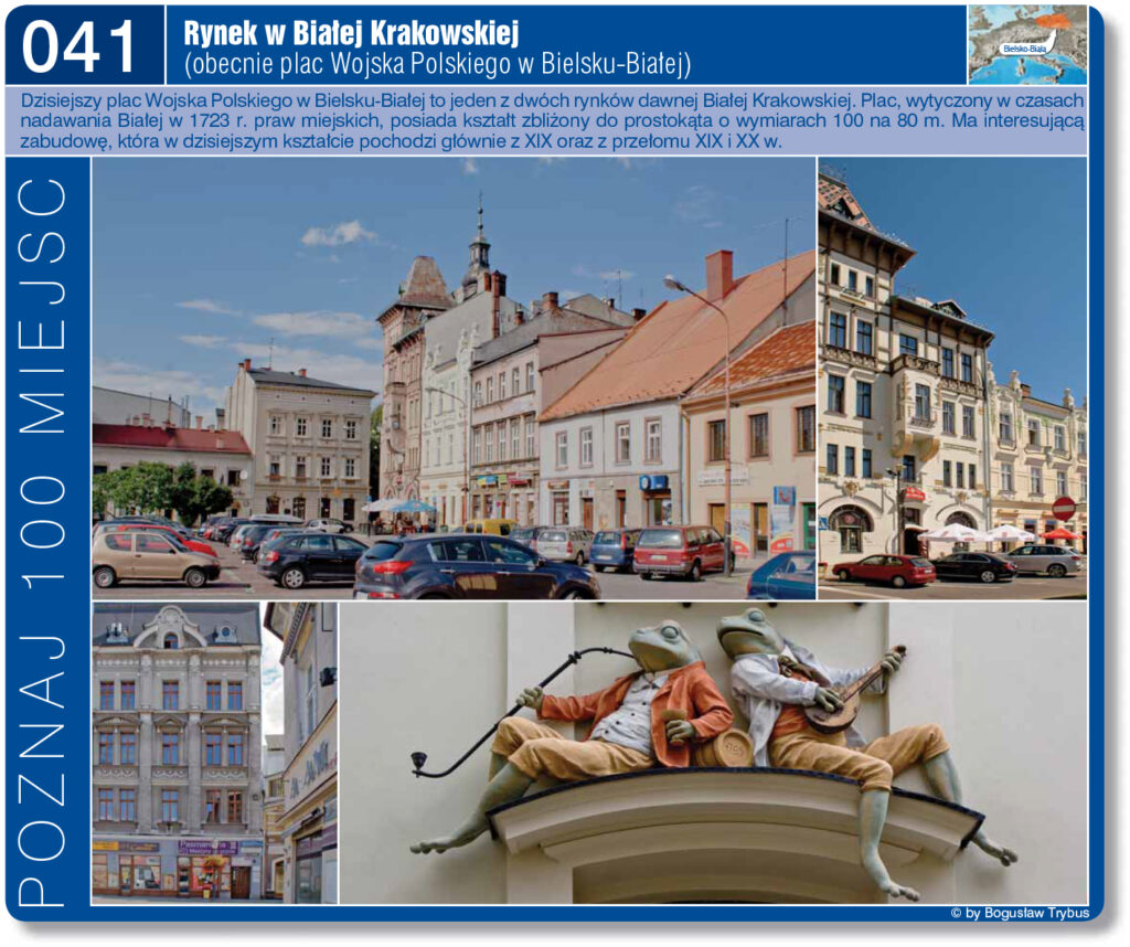1 stycznia 1951 roku w jeden organizm miejski połączono Bielsko – miasto leżące na Śląsku Cieszyńskim, i małopolską Białą Krakowską. W ten formalny sposób powstało jedno miasto Bielsko-Biała złożone z dwóch miast położonych po dwóch stronach rzeki Biała. Każde z tych miast miało swój rynek, ten z Białej utracił już swoją rangę i obecnie jest placem Wojska Polskiego.
