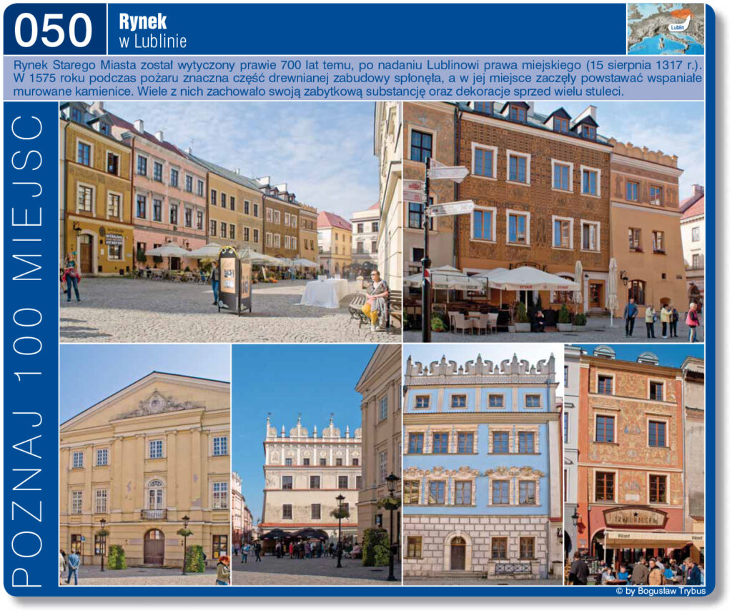 Rynek w Lublinie posiada dobrze zachowany pierwotny układ architektoniczny. Wokół placu rynkowego stoją okazałe kamienice, które wyznaczają cztery pierzeje. Ich właścicielami byli mieszczanie, nie tylko polskiego pochodzenia. Na przestrzeni wieków żyli tu również Niemcy, Żydzi, Włosi, Rusini, Ormianie, Grecy, Węgrzy, Francuzi i Szkoci.