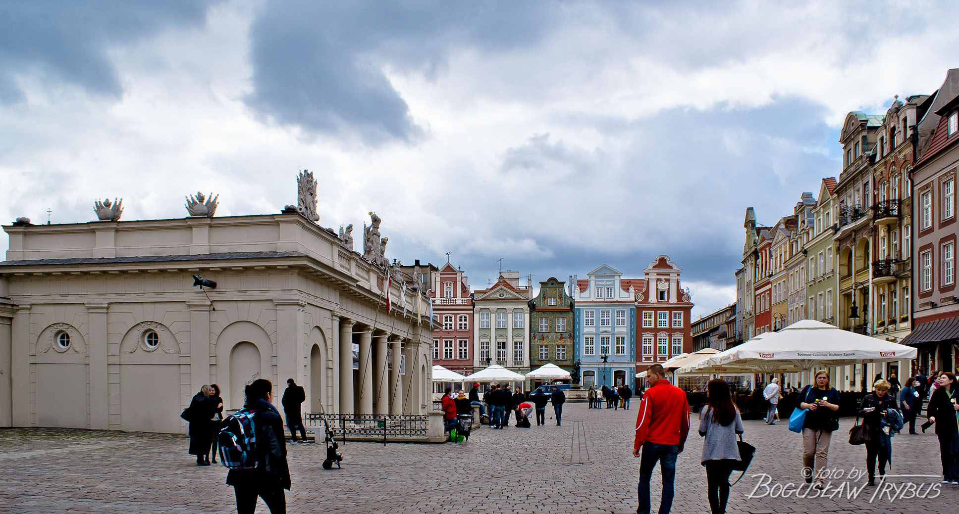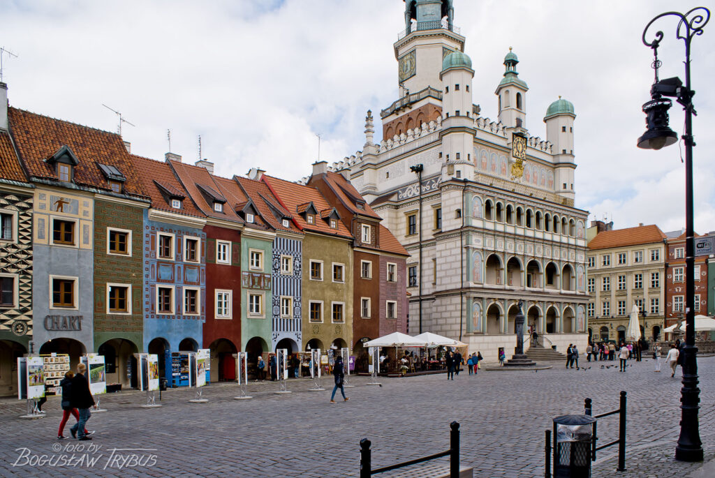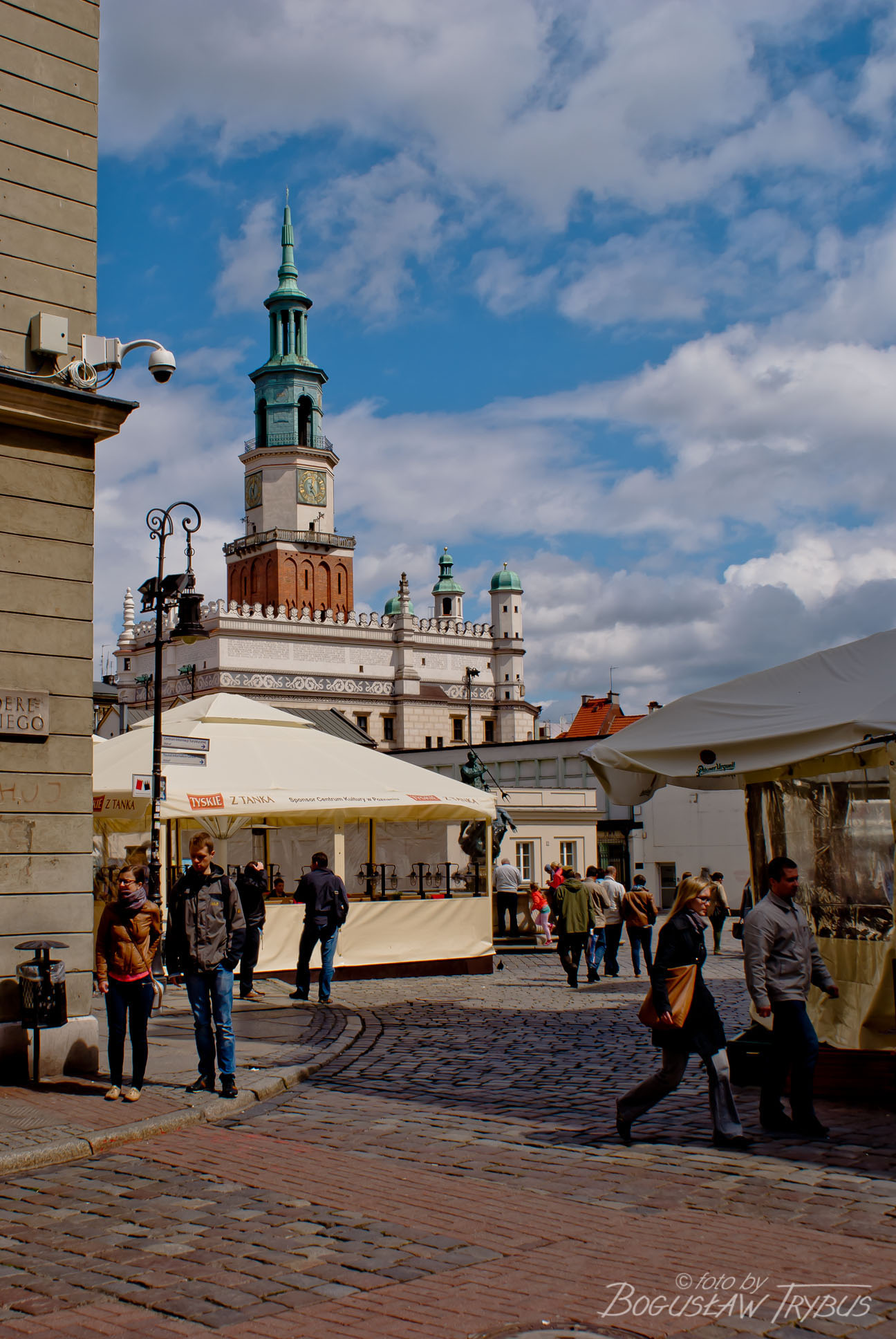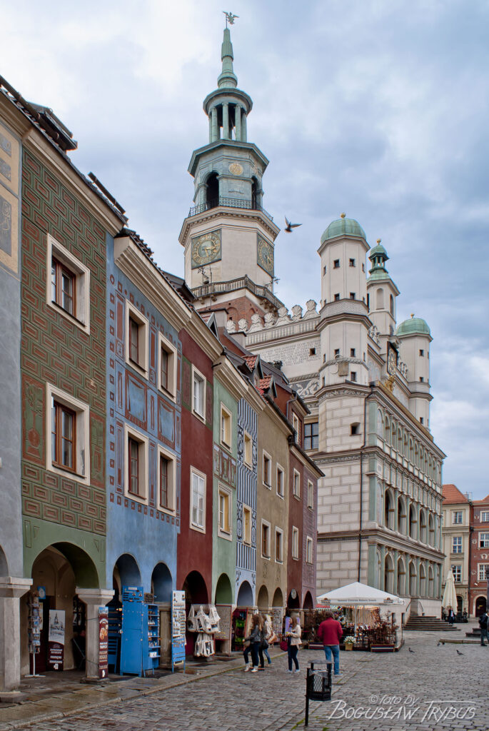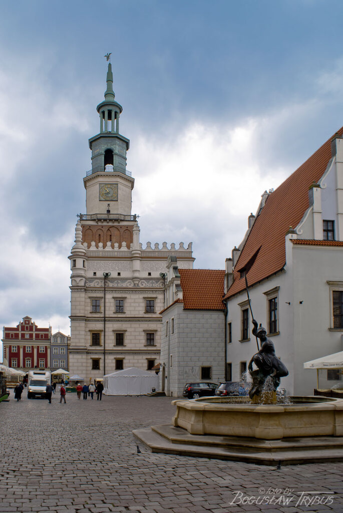 Najbardziej charakterystyczną budowlą jest renesansowy ratusz – symbol Poznania, uznawany za najpiękniejszy ratusz w Polsce. Każdego dnia o 12:00 z wieży rozlega się hejnał, a obok zegara pojawiają się dwa koziołki. Na to przedstawienie najlepiej przyjść kilkanaście minut przed południem – potem może nie być już miejsca.