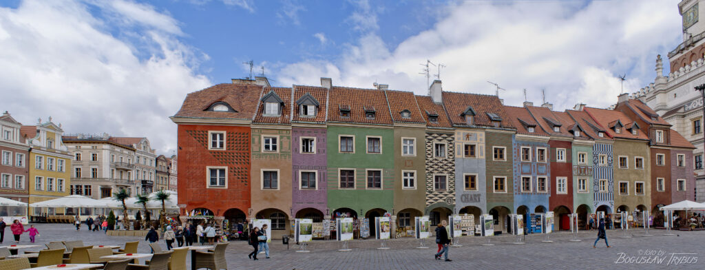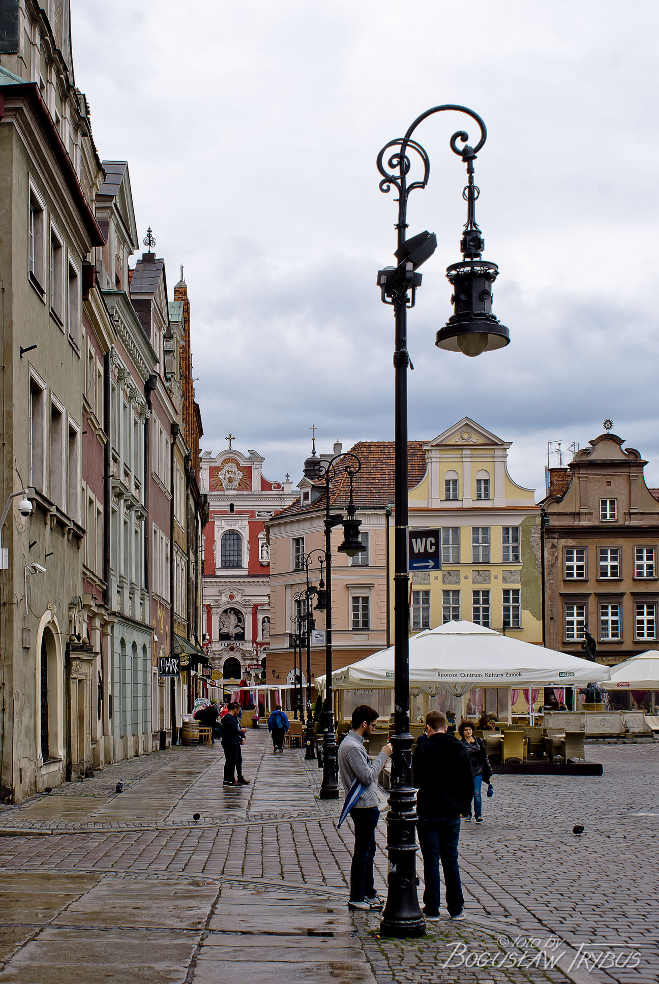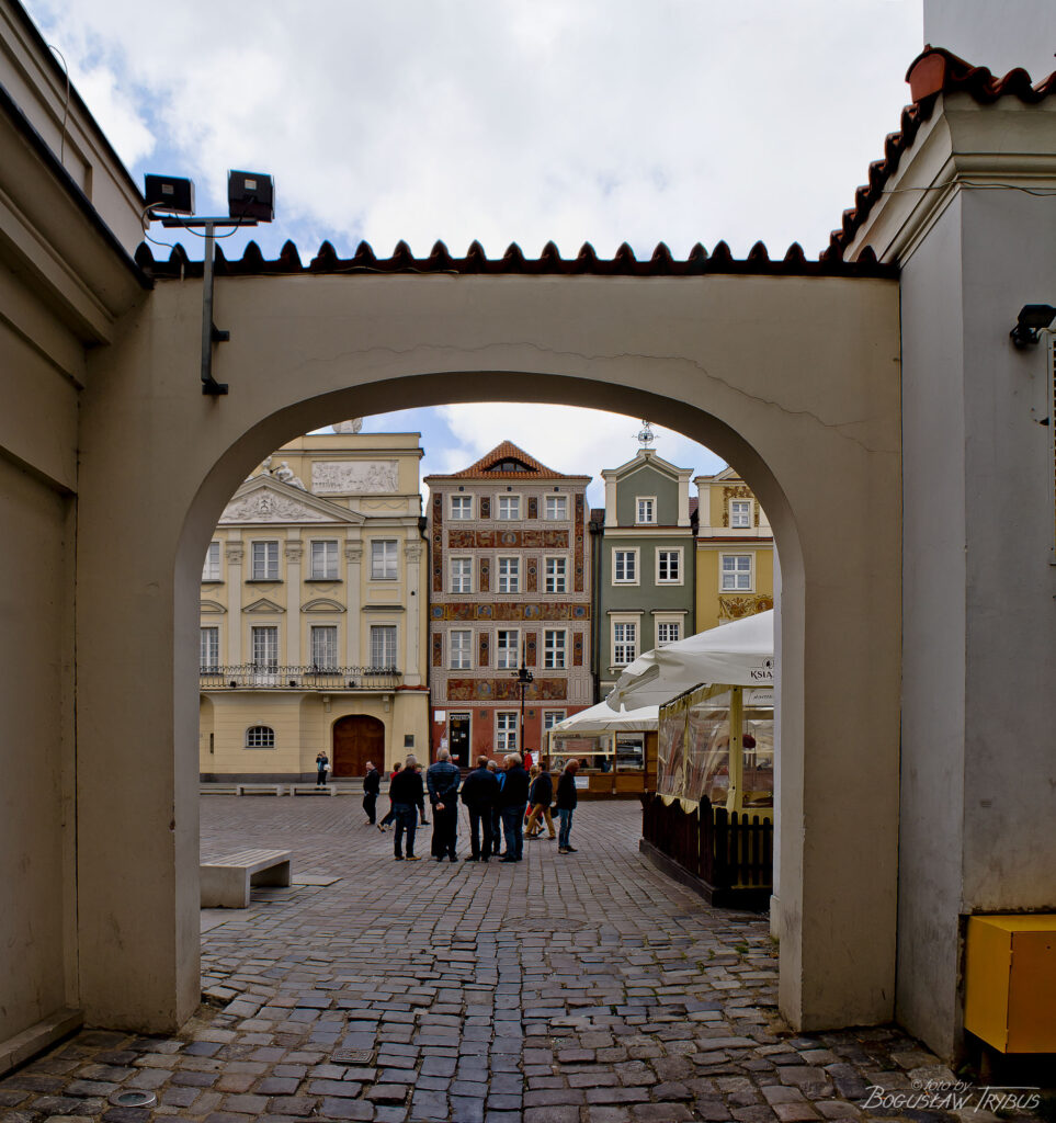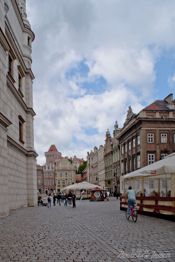 Stary Rynek w Poznaniu jest kwadratem o boku długości 141 metrów, a z każdej ze ścian wychodzą trzy ulice, z czego dwie skrajne z narożników.