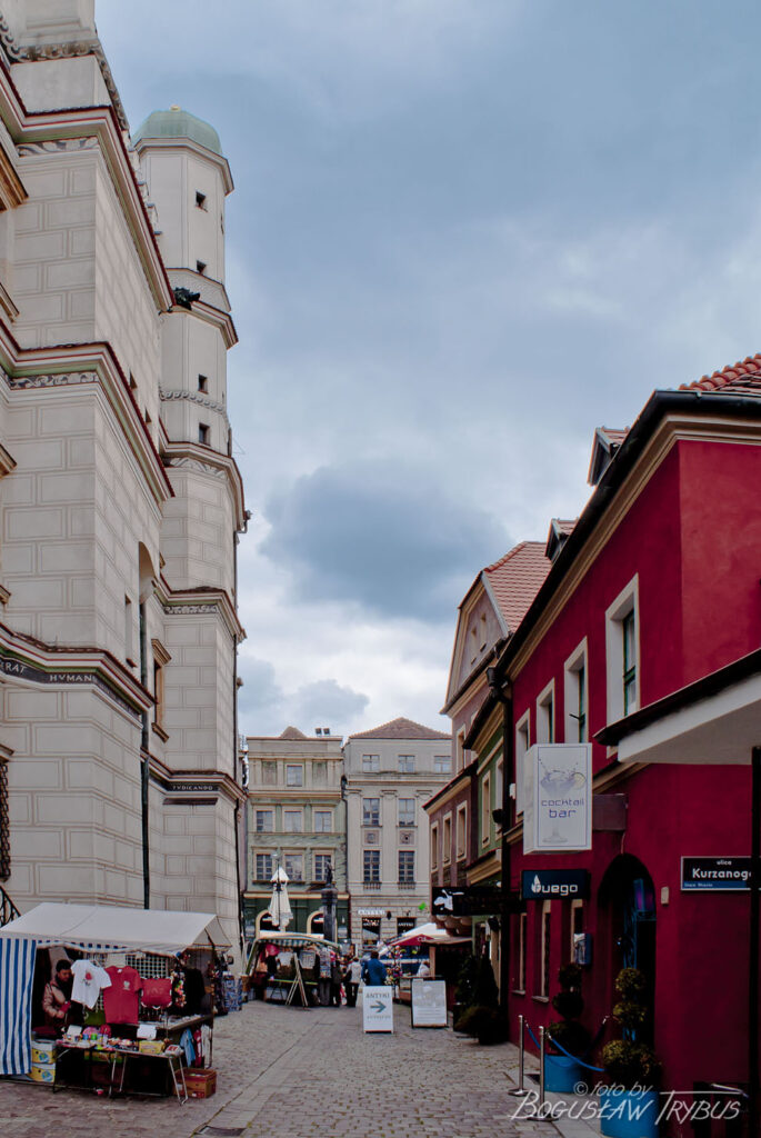 Przed ratuszem stoi pręgierz – słup przy którym w dawnych czasach wymierzano kary – obcinano uszy czy chłostano za różne przewinienia. Po jego lewej stronie ciągnie się rząd uroczych i domków budniczych, pomalowanych w jaskrawe barwy. W ich podcieniach niezmiennie od wieków toczy się handel – niegdyś świecami czy rybami, dzisiaj pamiątkami. Z kolei na tyłach ratusza znajduje się gmach dawnej Wagi Miejskiej, a nieopodal Odwach zbudowany w latach 1783-1787, obecnie mieści się tutaj Muzeum Powstania Wielkopolskiego. W południowej części rynku stoi figura św. Jana Nepomucena.