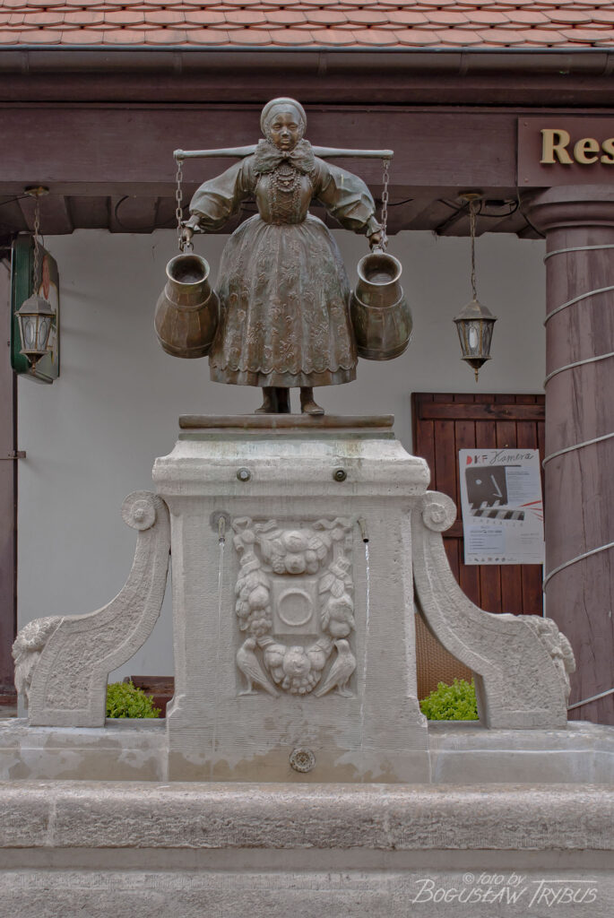 W 1613 roku, wg projektu Krzysztofa Redella odnowiono studzienki znajdujące się w narożach rynku. Pośrodku ośmiobocznych dębowych cembrowin, pomalowanych tak, by imitowały kamień, umiejscowiono słupy zwieńczone drewnianymi i polichromowanymi rzeźbami przedstawiającymi rzymskie bóstwa.