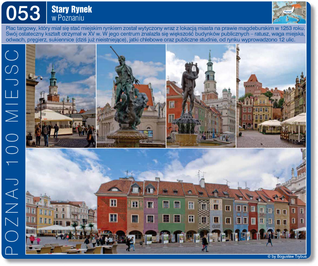 Stary Rynek stanowi centralny element średniowiecznego Poznania. Jest on trzecim największym rynkiem w Polsce (po krakowskim i wrocławskim). Nagromadzenie zabytków z niemal wszystkich epok, kilkadziesiąt restauracji, kawiarni i pubów w pobliżu oraz liczne imprezy decydują o jego atrakcyjności. To absolutne centrum turystycznego Poznania, także bez wątpienia najczęściej fotografowane miejsce w Poznaniu. Tutaj, na wieży ratusza, można też zobaczyć słynne poznańskie koziołki.