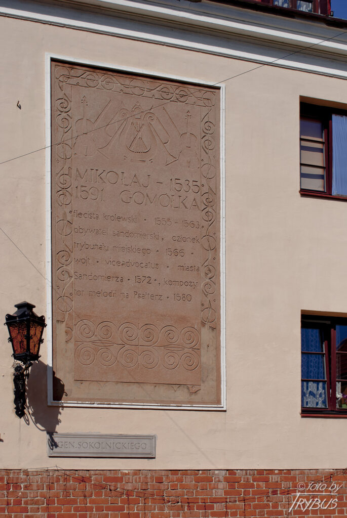 Narożna kamienica na Rynku pod nr 12 zwana Domem Mikołaja Gomółki (1535-1609), która przypuszczalnie należała wg wzmianek do słynnego kompozytora. Mikołaj Gomółka urodził się w.1535 r., w Sandomierzu. Wykształcenie muzyczne zdobył na dworze króla Zygmunta Augusta. Był on nadwornym kompozytorem króla Zygmunta Starego. W 1566 roku powrócił do rodzinnego Sandomierza i pełnił funkcje w władzach miejskich. W roku 1976 odnowiono elewację oraz umieszczono na ścianie wschodniej tekst poświęcony kompozytorowi.