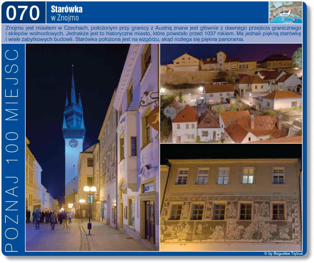 Znojemskie podziemia, z XIII−XVII w. Łączna długość wszystkich podziemnych korytarzy o 4. kondygnacjach − około 30 km. Czas przejścia podziemnej trasy turystycznej − 40 minut. Wejście do podziemi w Znojmo znajdziesz niedaleko Wieży Ratuszowej.